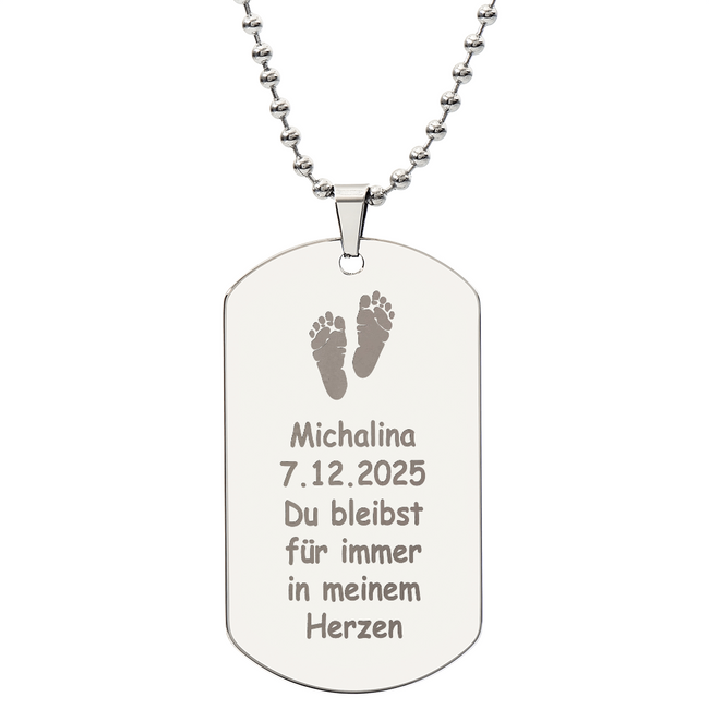 Surprise your loved one by giving them this unique and eye catching Engraved Dog Tag Necklace! It's a classic, yet stylish statement piece that is sure to spark conversation.